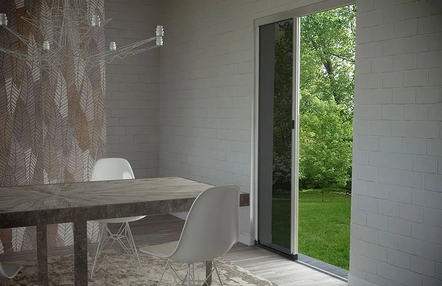 Zanzariere a Incasso (o Plissettate): Soluzioni dal design minimale che si integrano perfettamente nel vano finestra, particolarmente adatte per un look moderno ed elegante.